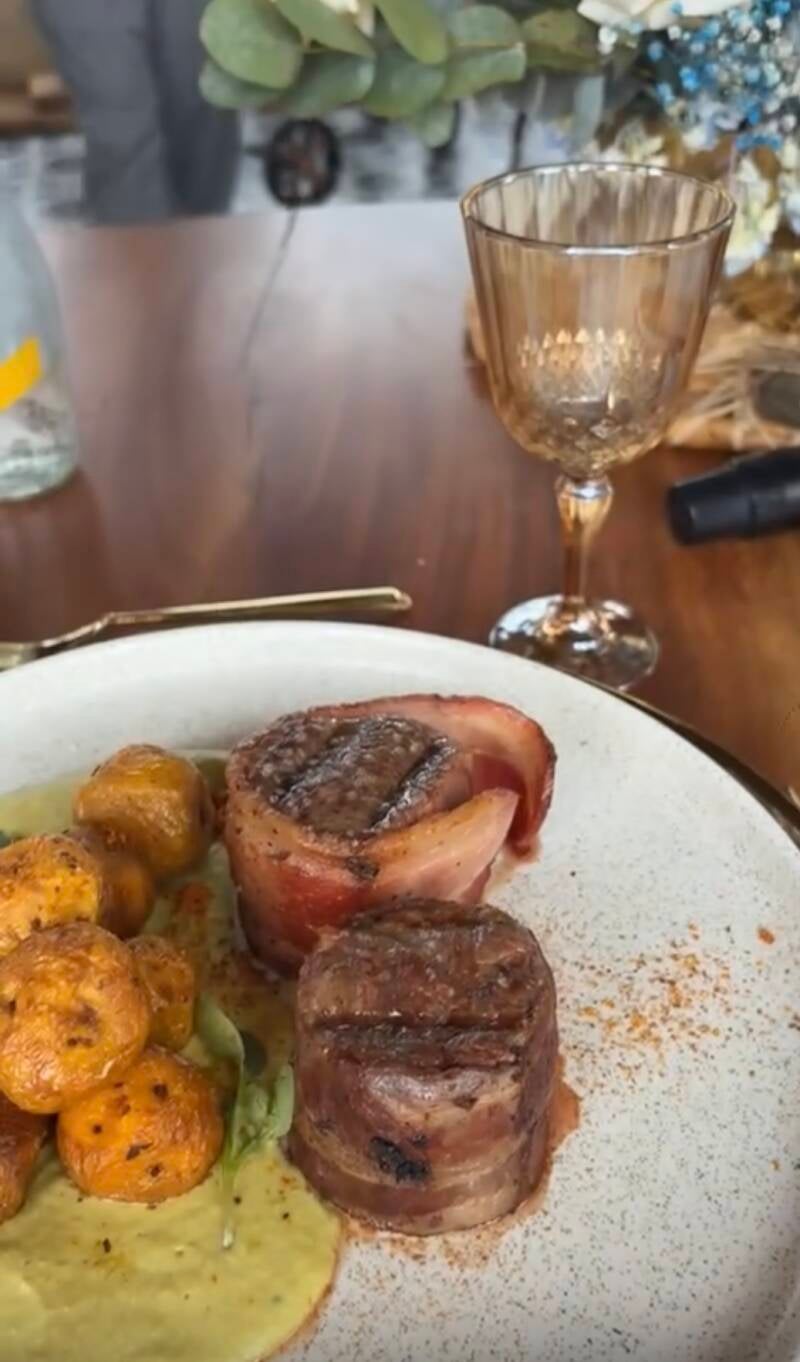 En plat : Un filet mignon parfaitement cuisiné, accompagné de pommes de terre rôties en sauce.